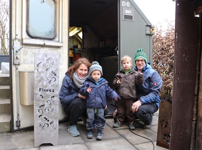 Oerlingen - Jennifer und Jimmy Grab fertigen in ihrem umgebauten Militäranhänger Objekte wie Feuersäulen oder Figuren aus Blech. Auch ihre Söhne haben sie bereits mit der Handwerker-Leidenschaft angesteckt.