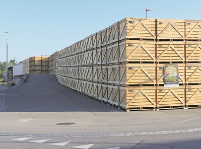 17. August 2018Derzeit lässt die Landi Weinland auf dem Hof von Jürg Gisler 700 Paloxen aus vorgefertigten Elementen zusammenbauen. Sie bestehen aus Schweizer Käferholz.