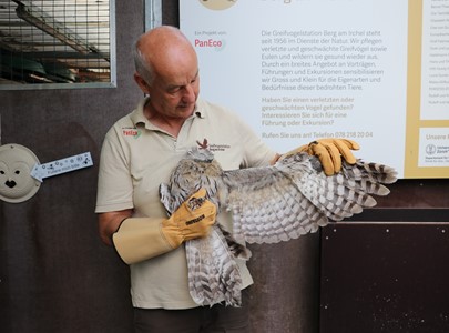 Berg am Irchel - Der Nachwuchs des Habichtskauzpaars der Greifvogelstation geht heute auf grosse Reise. Er wird im Rahmen eines Wiederansiedlungsprojekts in Wien in die Wildnis entlassen.