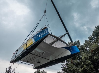 Segelsport - Der Hochseekatamaran, den der Verein Ocean Youth Sailing mit Jugendlichen gebaut hat, ist in seinem Element. Nach dreieinhalbjähriger Bauzeit ist die Einwasserung geglückt.